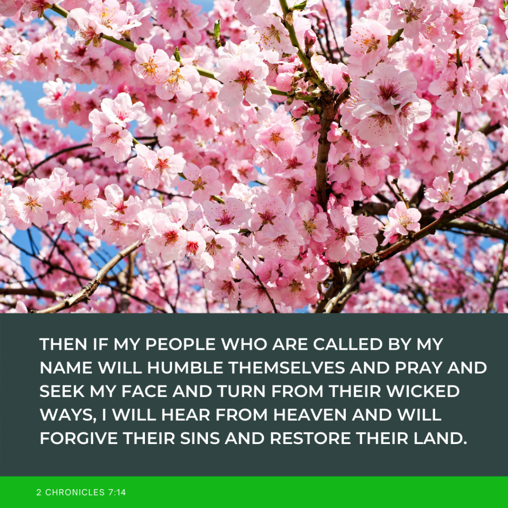 Then if my people who are called by my name will humble themselves and pray and seek my face and turn from their wicked ways, I will hear from heaven and will forgive their sins and restore their land. 2 Chronicles 7:14