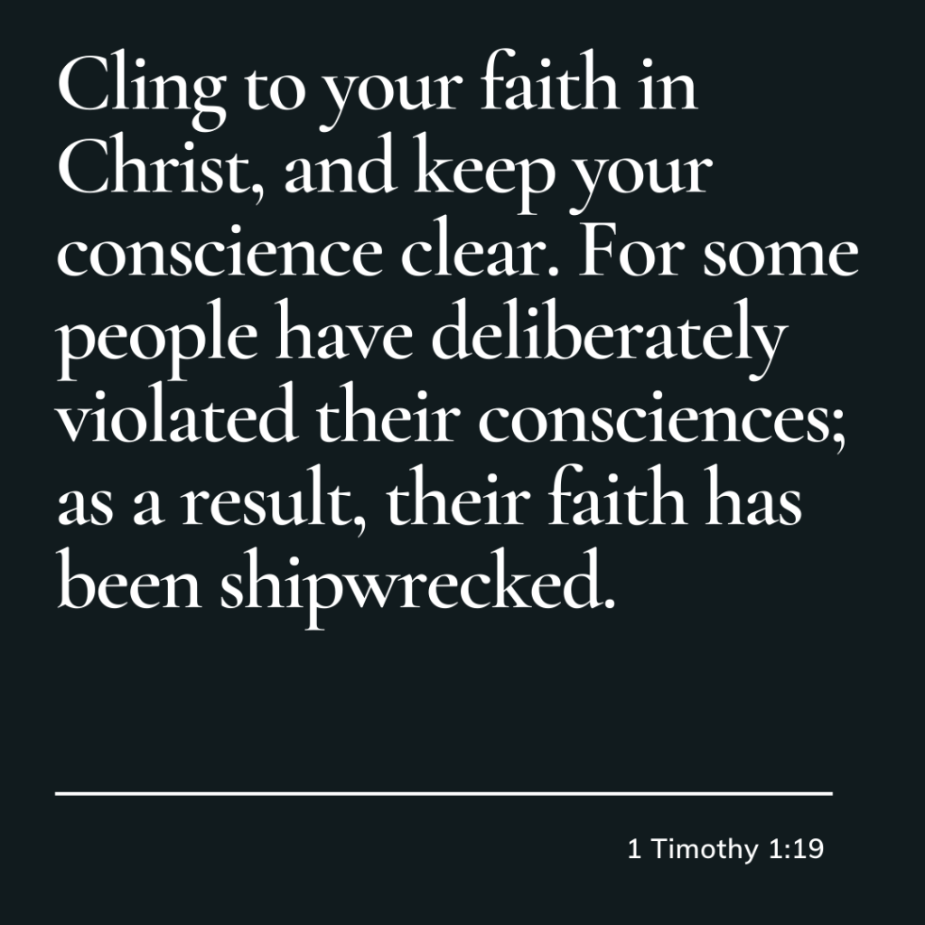 Cling to your faith in Christ, and keep your conscience clear. For some people have deliberately violated their consciences; as a result, their faith has been shipwrecked. 1 Timothy 1:19