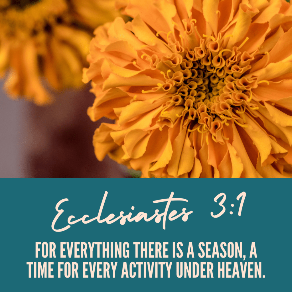 For everything there is a season, a time for every activity under heaven. Ecclesiastes 3:1