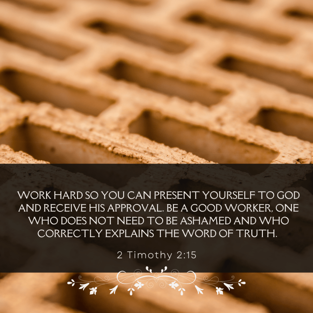 Work hard so you can present yourself to God and receive his approval. Be a good worker, one who does not need to be ashamed and who correctly explains the word of truth. 2 Timothy 2:15