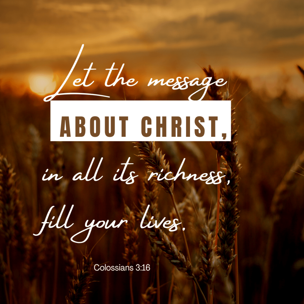 Let the message about Christ, in all its richness, fill your lives. Colossians 3:16