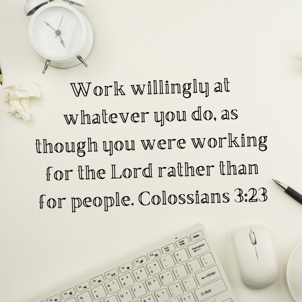 Work willingly at whatever you do, as though you were working for the Lord rather than for people. Colossians 3:23