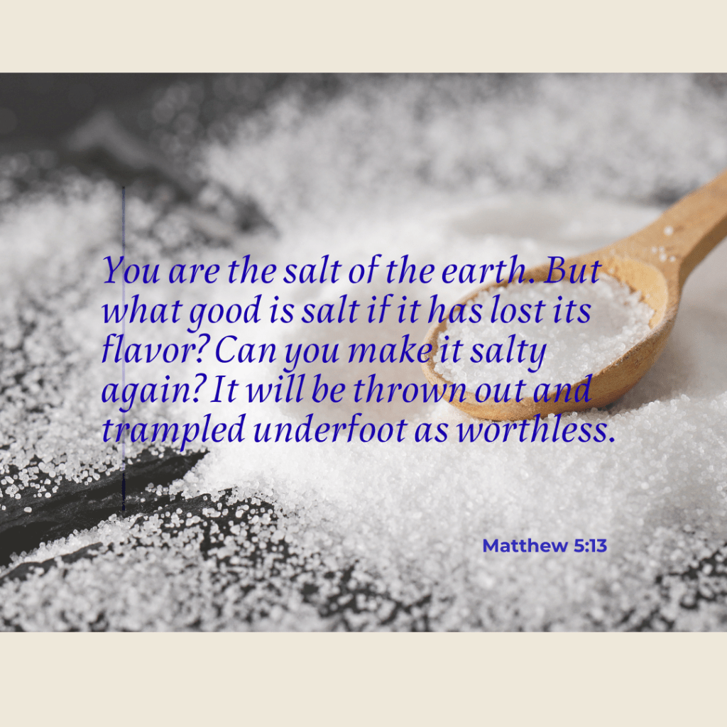 You are the salt of the earth. But what good is salt if it has lost its flavor? Can you make it salty again? It will be thrown out and trampled underfoot as worthless. Matthew 5:13