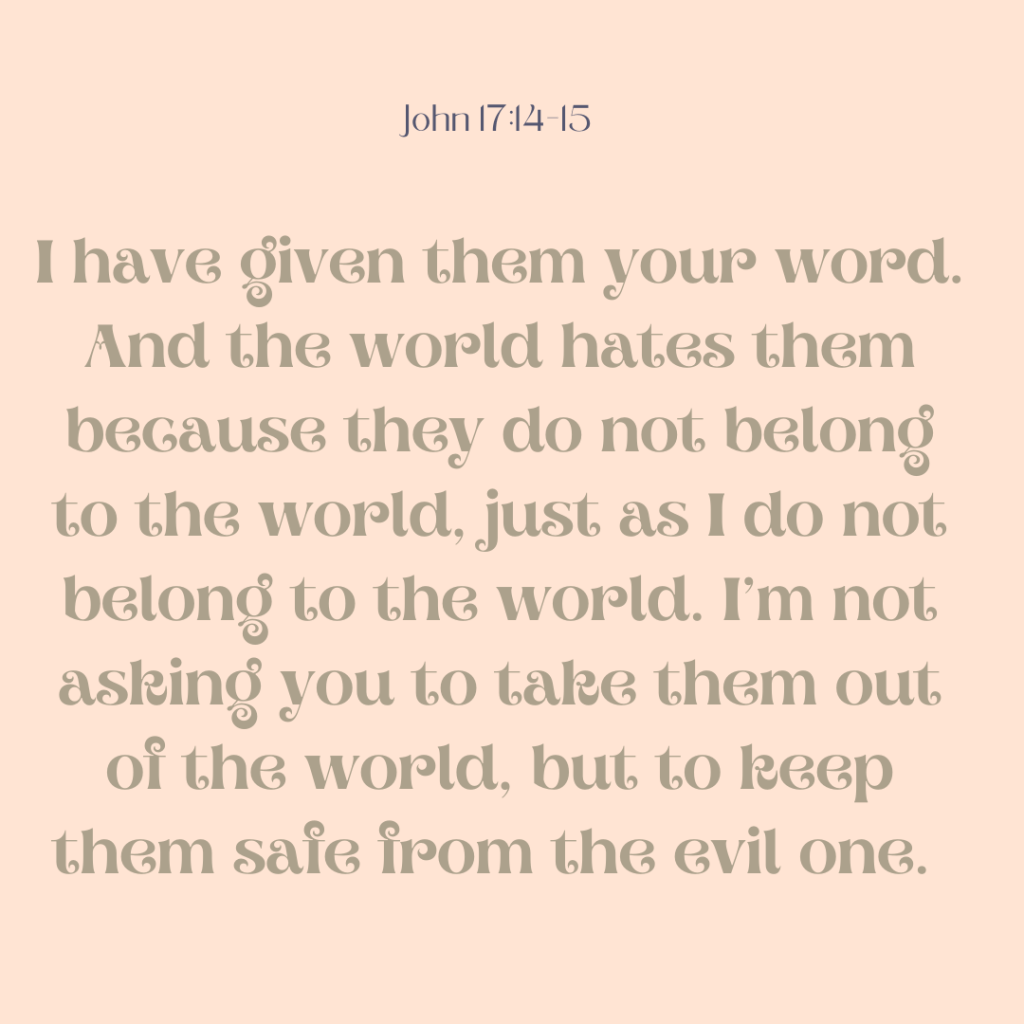 If the world hates you, remember that it hated me first. The world would love you as one of its own if you belonged to it, but you are no longer part of the world. I chose you to come out of the world, so it hates you. Do you remember what I told you? ‘A slave is not greater than the master.’ Since they persecuted me, naturally they will persecute you. And if they had listened to me, they would listen to you. John 15:18-20