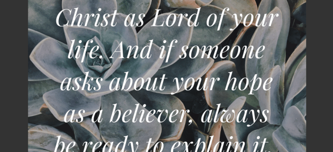 You must worship Christ as Lord of your life. And if someone asks about your hope as a believer, always be ready to explain it. 1 Peter 3:15